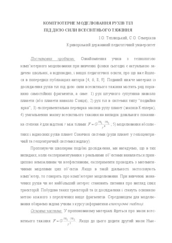 - Семеріков, С.О. and Теплицький, І.О. (2006) Computer modeling of the body under the force of gravity Науковий часопис Національного педагогічного університету імені М. П. Драгоманова, 2 (12).