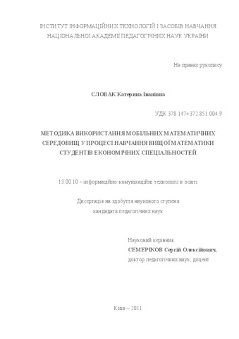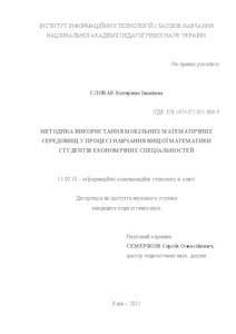 - Словак, К. І. (2011) Methodic of using mobile mathematical environments in the process of education higher mathematics of student of economic specialties Dissertation candidate thesis, Інститут інформаційних технологій і засобів навчання.