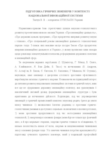 ПІДГОТОВКА ГІРНИЧИХ ІНЖЕНЕРІВ У КОНТЕКСТІ НАЦІОНАЛЬНОЇ ІННОВАЦІЙНОЇ СИСТЕМИ.pdf Download (201kB) | Preview |