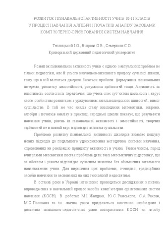 - Семеріков, С.О., Теплицький, І.О. and Віхрова, О.В. (2004) Development of cognitive activity of students 10-11 classes in teaching algebra and principles of analysis of computer-oriented teaching systems Рідна школа, 6.