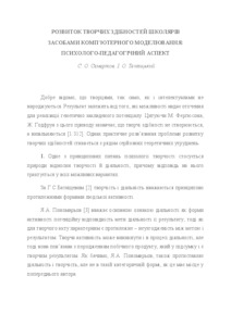 - Семеріков, С.О. and Теплицький, І.О. (2005) The development of creative abilities of pupils by means of computer simulation: psychological and pedagogical aspects Актуальні проблеми психології: Психологічна теорія і технологія навчання, 1 (8).