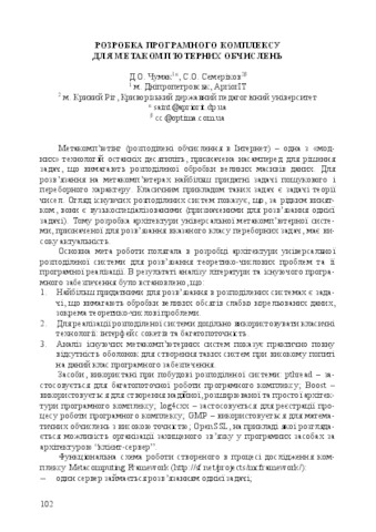 - Семеріков, С.О. and Чумак, Д.О. (2007) Development of software for computer calculations goal In: Проблеми підготовки та перепідготовки фахівців у сфері інформаційних технологій: Матеріали V Міжнародної науково-технічної конференції «Комп’ютерні технології в будівництві» . Видавничий відділ НМетАУ, м. Кривий Ріг, Україна.