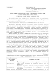 - Маркова, О. М. (2016) The model of methodical system and learning objectives of the foundations of mathematical informatics for students of technical universities Вісник Черкаського університету. Серія Педагогічні науки, 7. pp. 36-42. ISSN 2076-586X