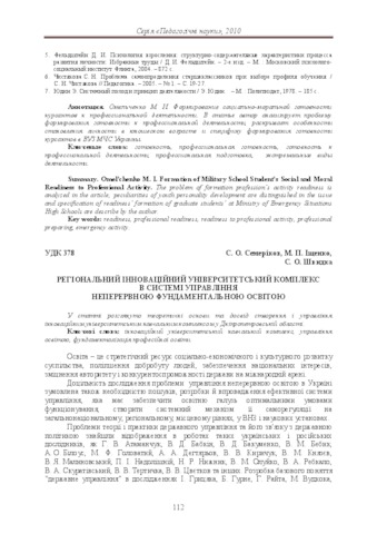 - Семеріков, С.О., Іщенко, М.П. and Швидка, С.О. (2010) Regional innovation university complex in the management of continuous fundamental education Вісник Черкаського університету. Сер. Педагогічні науки, 4 (183).