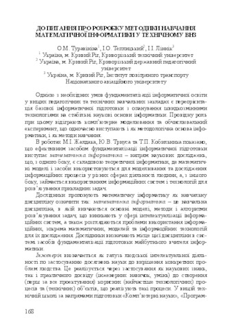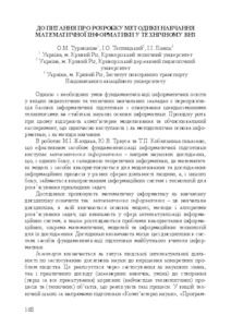 - Туравініна, О.М., Теплицький, І.О. and Ліннік, І.І. (2010) On the development of mathematical informatics teaching methodic in technical universities In: Новітні комп'ютерні технології (8). Міністерство регіонального розвитку та будівництва України, м. Київ, Україна, pp. 168-169.