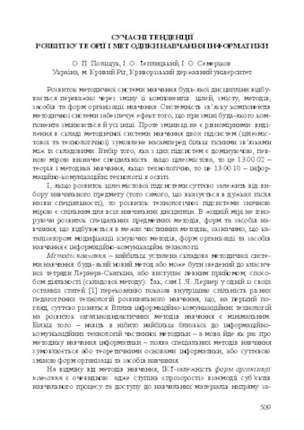 - Семеріков, С.О., Теплицький, І.О. and Поліщук, О.П. (2011) Modern trends in theory and methods of teaching science Теорія та методика навчання математики, фізики, інформатики, 1 (9).