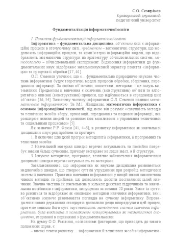 | Keywords: | fundamentalization, informatychna education, computer science, mathematical science, information technology, teaching system |