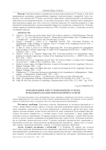 - Семеріков, С.О. (2008) Fundiyuvannya training content as a basis fundamentalization informatychnoyi education Наукові записки Тернопільського національного педагогічного університету імені Володимира Гнатюка. Серія: Педагогіка, 1 (8).