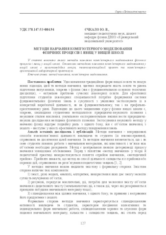 - Єчкало, Ю.В. (2016) Methods of learning of computer simulation of physical processes and phenomena in university Вісник Черкаського університету. Серія: Педагогічні науки, 7. pp. 127-134. ISSN 2076-586Х