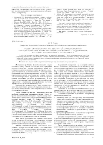 - Єчкало, Ю.В. (2012) Development of intellectual abilities of high school pupils in learning physics by means of computer simulation: results of pedagogical experiment Збірник наукових праць Кам’янець-Подільського національного університету імені Івана Огієнка. Серія педагогічна, 1 (18). pp. 117-119. ISSN 2307-4507