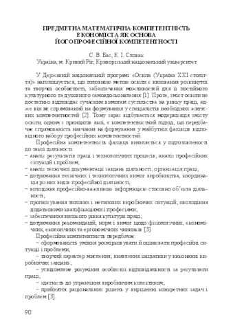 - Бас, С. В. and Словак, К. І. (2012) Subject Mathematical competence economics as the basis of his professional competence Новітні комп’ютерні технології (10). pp. 90-94.