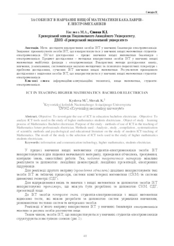 - Кислова, М.А. and Словак, К. І. (2014) ICT in teaching Higher Mathematics bachelor electrician In: Тези доповідей II Міжнародної науково-практичної конференції «Інформаційні технології в освіті, науці і техніці» (ІТОНТ-2014) , 2 . ЧДТУ, м. Черкаси, Україна, pp. 40-41.