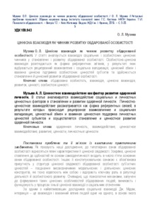 In the article social-psychological factors, which determine a gifted personality’s development are analyzed. Personality-value interaction is observed as a form of referent relations, in the result of which reciprocal mutual influence and social validation, value exchange and mutual value support of subjects’ personality values occurs and gifted personality’s formation and value development is performed. In the result of theoretical analysis and empiric research data analysis it is stated, that personality-value interaction influences on gifted personality’s subjective values characteristics, which play a key role in the activity and self-development regulation. Content connections of gifted personality’s subjective values with referent persons’ values are confirmed. It is shown, that gifted personality’s value uniqueness is determined by its selectivity concerning referent influences and uniqueness of the own value experience. It is confirmed, that gifted personality’s value autonomy is provided by its high self-esteem in the space of personality values (as a rule, the highest in comparison with referent persons’ estimation). Self-development vector in the process of value interaction is actualized by the lower self-esteem indicators of separate significant constructs in comparison with their intensity estimations in referent persons. It is shown, that in the stage of becoming (gaining by a person of all features, characteristic for a gifted person) personality-value interaction with referent persons has a directing and supporting character. It favors a value attitude to the sphere of activity, in which a child starts to develop own abilities, satisfying the need of recognition and cognitive-creative needs. In the process of gifted personality’s further development the formation and support of personality values become a content of personality-value interaction. These values are connected with abilities’ self-development in the context of existential needs satisfying. At this stage requirements for referent persons, in sense of their competence and moral qualities, increase.