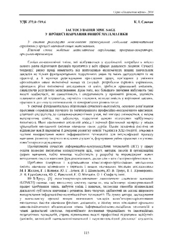 - Словак, К. І. (2010) Using MME Sage in the process of learning in higher mathematics Вісник Черкаського університету. Серія педагогічні науки, 1 (191). pp. 106-111. ISSN 2076-586Х