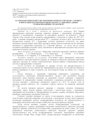 Abstracts devoted to the problem of selection means of training future engineers mining structure in the formation of ecological competence using GIS.
