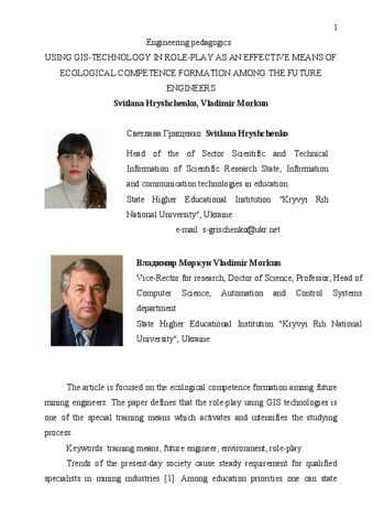 - Грищенко, С.М. and Моркун, В.С. (2015) Using gis-technology in role-play as an effective means of ecological competence formation among the future engineers Metallurgical and Mining Industry, 4. pp. 139-142. ISSN 20760507