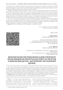 Nowadays the problem of using multimedia electronic educational resources on language disciplines in Moodle is very important. The article deals with the analyses of international and domestic experience of Moodle using. Using Moodle, it is possible to individualize instruction, to intensify the activities of students during training, to diversify forms of training, as well as to promote the formation and development of information and communication technology competence of teachers. Moodle is a free and open-source software learning management system. Moodle is based on pedagogical principles, and used for blended learning, distance education, flipped classroom and other e-learning projects at schools, universities, workplaces etc., It is used to create private websites with online courses for educators and trainers to achieve learning goals. Moodle (acronym for modular object-oriented dynamic learning environment) allows to extend learning environments using community sourced plugins. The philosophy of Moodle includes a constructivist and social constructionist approach to education, emphasizing the fact that learners (and not only teachers) can contribute to the educational experience. Using these pedagogical principles, Moodle provides an environment for learning communities. The article analyzes the domestic and foreign experience of using Moodle learning management system for creation multimedia electronic educational resources for language disciplines. It characterizes scientific works of Ukrainian and foreign scientists who considered the use of remote learning system Moodle in education, including language learning. So the article is very actual because of the lack of researches and special scientific works in the field of information and communication technology in education.