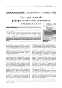 The article covers results (changes in a structure and substance of the school education, organization of the educational process, teaching methods and management system) and generalizes experience of the school education reformation in Ukraine in the 20th century.