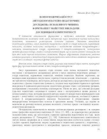 Дічек, Наталія Петрівна (2015) Road upgrading course "Methodology of scientific and educational research" as an important factor in the formation of future teachers of research competence . Київський університет імені Бориса Грінченка, м.Київ, Україна, pp. 81-105. ISBN 978-617-658-011-9