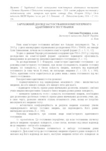 - Науменко, С.О. (2016) Foreign experience of computer adaptive testing In: "Педагогічна компаративістика – 2016: освітні реформи та інновації у глобалізованому світі": матеріали наук.-практ. семінару (Київ, 09 червня 2016 р.) . Інститут педагогіки НАПН України, м.Київ, Україна, pp. 192-196.