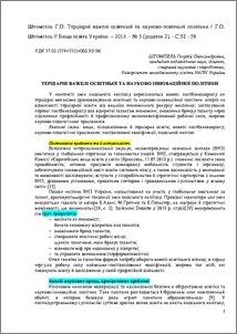 - Штомпель, Г.О. (2013) Tertiary Levers in Educational and Research-innovational Policy Вища освіта України (3). pp. 52-58.