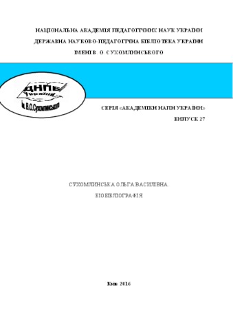 Березівська, Лариса Дмитрівна (orcid.org/0000-0002-5068-5234), Заліток, Людмила Михайлівна and Покусова, Олена Сергіївна (2016) Sukhomlynska Olga Vasulyvna. Bibliography . НАПН України, ДНПБ України ім. В. О. Сухомлинського, м. Київ, Україна.