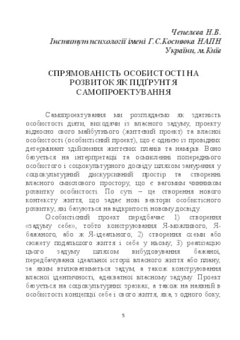 - Чепелєва, Н.В. (2016) The directionality of personality development as the basis of self-designing Психологія саморозвитку особистості.. pp. 5-18.