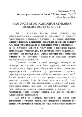 - Смульсон, Марина Лазарівна (2016) Personality self-development and self-design in the old age Психологія саморозвитку особистості. pp. 19-34.