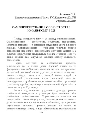 - Зазимко, О.В. (2016) The self-designing of a personality in adolescence Психологія саморозвитку особистості. pp. 154-165.