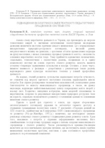 The necessity of environmental awareness and behavior, reference to environmental issues in their professional activities, especially such industries as construction, through increased environmental competence teaching staff, as a condition of providing environmental education of future skilled workers. Indicated that special attention in the content of education should be given to solving practical problems of sustainable development for the study of international educational experience and improve innovative methodological tools of learning.