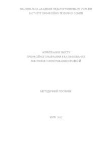 The manual addresses the problem of determining the content of professional skilled workers for the integrated (aggregated) professions. The analysis of training skilled workers for integrated (aggregated) trades in schools in Germany, identified a positive experience that can be useful in the system of vocational education in Ukraine. Presents the theoretical and methodological foundations for shaping the content of vocational training integrated professions. For scientists, educators, vocational and higher education institutions, students of postgraduate education institutions.