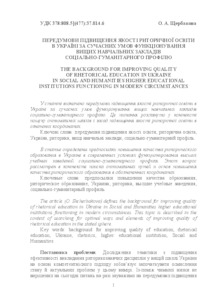| Keywords: | background for improving quality of education, rhetorical education, Ukraine, rhetorics, higher educational institution, Social and Humanities |