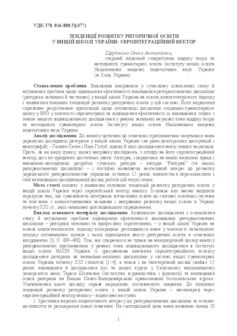 | Keywords: | rhetorical education, trends in rhetorical education development, rhetoric, higher school in Ukraine, European integration vector. |