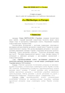 | Additional Information: | Shcherbakova Olena (Ukraine). L’étude est menée dans le cadre de la préparation à la Conférence internationale « La Rhéthorique en Europe » (Saarbrücken, 9–13 octobre 2013) / Olena Shcherbakova [Electronic resource] // URL : uni-saarland.de›fileadmin…Shcherbakova_Olena.pdf http://www.uni-saarland.de/fileadmin/user_upload/Info/Europa/institute/eir/Proceedings/Paper_Shcherbakova_Olena.pdf. |