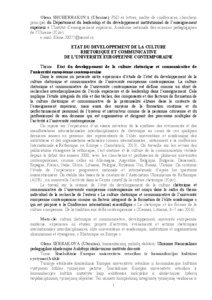 Text (Стаття О.Щербакової "Etat du developpement de la culture rhétorique et communicative de l’université européenne contemporaine" у наук. журн. Ун-ту Вітаутаса Великого "Darbai ir Dienos" ("Days and Deeds"); франц. мовою)