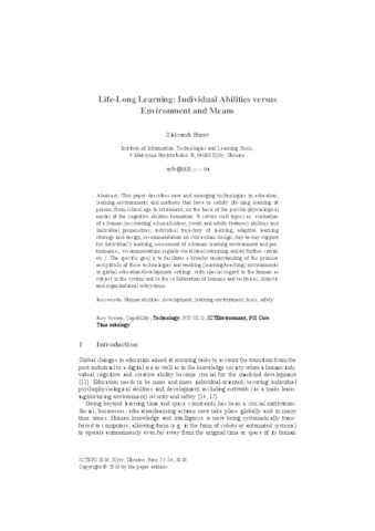 - Burov, O. Yu. (2016) Life-Long Learning: Individual Abilities versus Environment and Means ICT in Education, Research and Industrial Applications. Integration, Harmonization and Knowledge Transfer, 1614. ISSN 1613-0073
