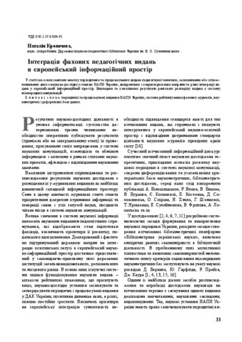 - Кропочева, Наталія Миколаївна (2016) The integration of professional pedagogical publications in European information space Бібліотечний вісник, 2 (232). pp. 33-39. ISSN 1029-7200