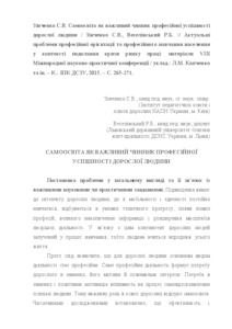 - Зінченко, Світлана Володимирівна and Веселівський, Р.Б. (2015) Self-education as an important factor of professional success adult Current problems of vocational guidance and vocational training of the population in the context of overcoming the crisis of the labour market. pp. 265-271.