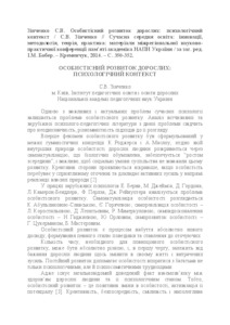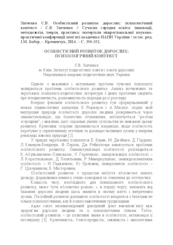 - Зінченко, Світлана Володимирівна (2014) Personal development adults: a psychological context In: Сучасна середня освіта: інновації, методологія, теорія, практика . ПП Щербатих О.В., м. Кременчук, Україна, pp. 350-352.