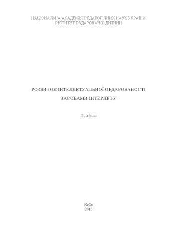 Лучинкіна, А.І., Міленіна, М.М., Мілютіна, К.Л. and Ковальчук, Ю.М. (2015) The development of intellectual giftedness by means of the Internet . Institute of Gifted Child of NAPS of Ukraine. (Unpublished)