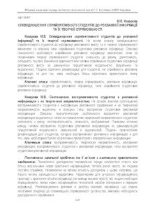- Кокарєва, М. В. (2016) Interrelation of students’ perceptiveness to advertising information and their creative orientation Актуальні проблеми психології. - Том VІ: Психологія обдарованості, 6 (12). pp. 119-126. ISSN 2072-4772