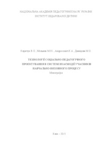 The monograph reveals theoretical principles of the features of socio-pedagogical design and guides practical aspects of designing educational activities in the educational process of an educational institution for the purpose of student’s personal development. For researchers, managers, teachers, psychologists, secondary schools stuff, students and all interested in implementing the principles of project-oriented pedagogy.