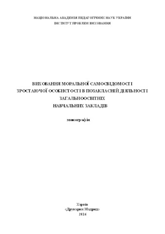 In the monograph deals with the conceptual bases of moral education of self-identity, pedagogical ideas V.O.Suhomlynskiy on the abovementioned issues, and presents the results of laboratory studies of civil and moral education of the Institute of Problems of Education NAPS of Ukraine moral consciousness education students of secondary schools. The methods of formation as studied in primary school children, younger and older adolescents - secondary school students, high school students, including through art. The publication will be of interest to scientists, educators, teachers and students of pedagogical universities, for anyone who wants to learn more about the moral education of children.