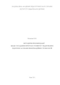 The methodical study, referring to the information material-and-technical conditions of educational process implementation, offers techniques, teaching methods, forms and programming algorithms for the development of gifted adolescents. The proposed guidelines outline general principles and requirements for the formation of programs of giftedness development by means of information technologies. They include psychological advice on the implementation of the educational process with gifted adolescents in the Internet environment, offering examples of collective and individual strategies of gifted adolescents through the implementation of programs by means of information technology. For teachers of secondary schools and professionals working with gifted children in extracurricular educational institutions.