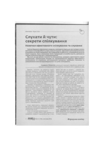 - Гриценок, Л.І. (2016) Listen and hear: secrets communication. The skills of effective communication and listening Шкільний світ, 21 (749). pp. 8-14.