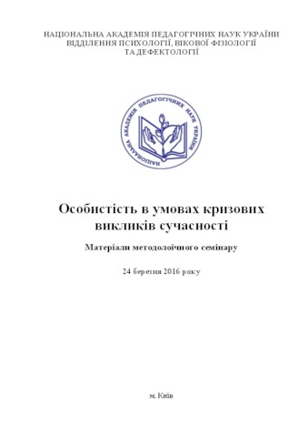 The materials of the methodological seminar covered theoretical and methodological problems of development and self-development in crisis challenges. The content of the articles reflect the urgent issues of theoretical and applied research aimed at solving the problems of life of the individual design and search strategies to provide psychological assistance to the victims of various segments of the population affected by life crisis, in restoring their psychological potential. The materials of the methodological seminar are for researchers in the field of psychology and pedagogy, graduate students, as well as practical psychologists and social workers.