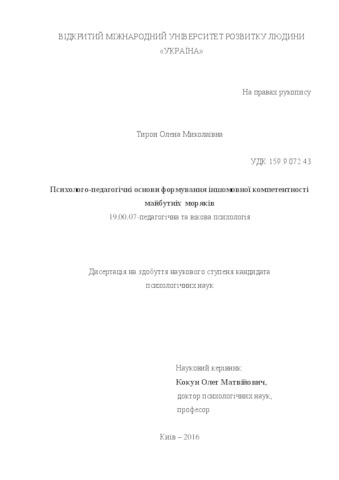 - Тирон, О.М. (2016) Psycho-pedagogical bases of foreign language competence formation of future seafarers Dissertation candidate thesis, Відкритий міжнародний університет розвитку людини «Україна».