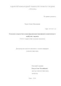 | Additional Information: | Дисертація на здобуття наукового ступеня кандидата психологічних наук за спеціальністю 19.00.07 – педагогічна та вікова психологія. – Інститут психології імені Г. С. Костюка НАПН України. – Київ, 2016. |
