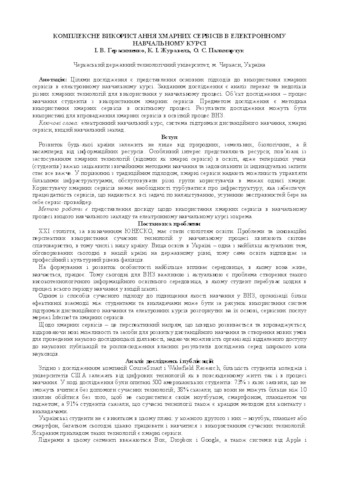 КОМПЛЕКСНЕ ВИКОРИСТАННЯ ХМАРНИХ СЕРВІСІВ В ЕЛЕКТРОННОМУ НАВЧАЛЬНОМУ КУРСІ.pdf Download (624kB) | Preview |