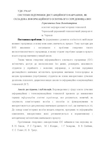 - Герасименко, І.В. (2013) E-learning system as a component of information educational environment Universities Проблеми сучасної педагогічної освіти, 4 (40). pp. 22-30.